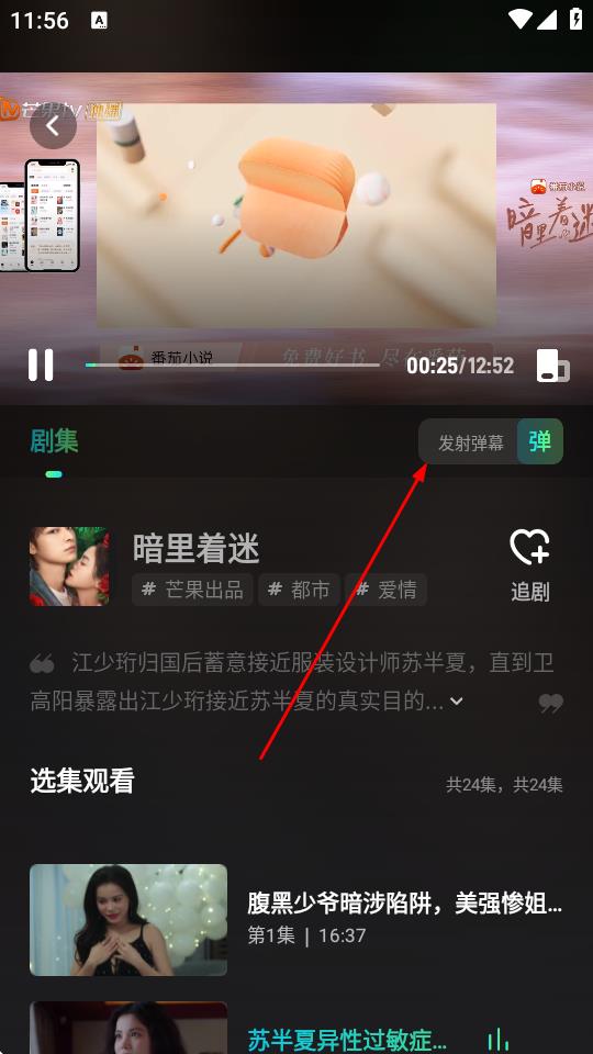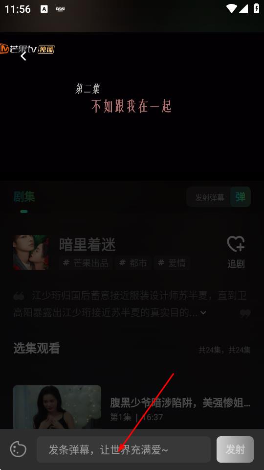 2、在劇集播放頁(yè)面,點(diǎn)擊發(fā)射彈幕按鈕。