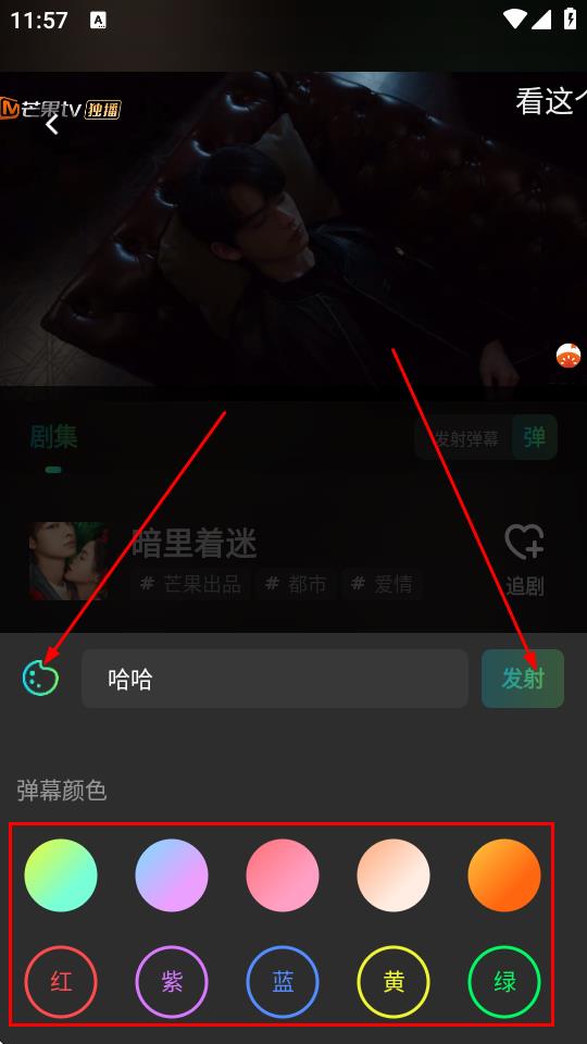 4、點(diǎn)擊輸入框左側(cè)的圖標(biāo),可選擇彈幕顏色等樣式。