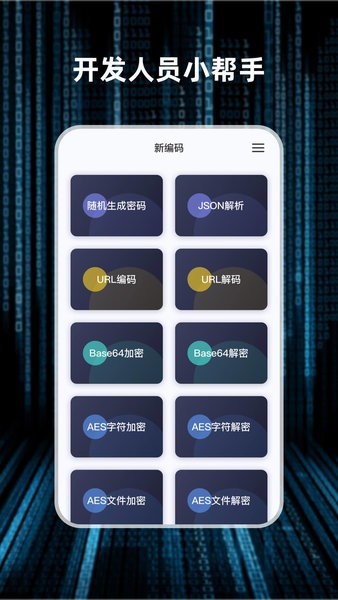 輕隨機(jī)編碼手機(jī)版是利用各種編程語言對所提供的的信息進(jìn)行輔助操作的編碼指令app,使用起來非常順手,支持多種密碼的解密和加密,不管是隨機(jī)生成還是按照需要的方式生成,都能夠獲得想要的編碼!