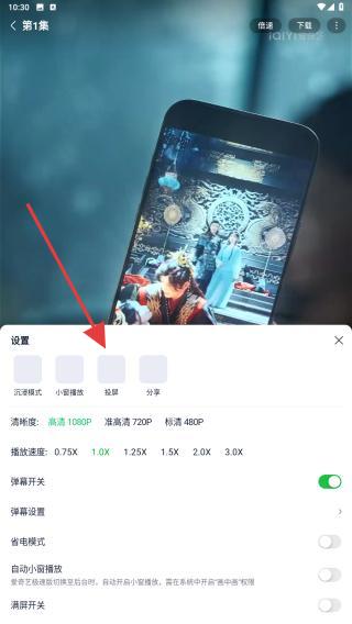 3、在展開的菜單中,找到并點(diǎn)擊投屏的功能選項(xiàng),即可開始投屏。