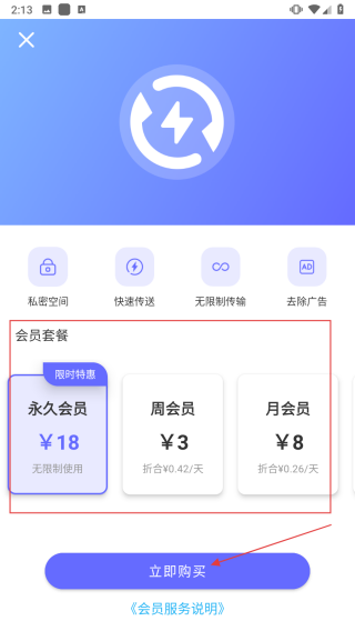 3、在會員套餐選擇界面,挑選需要的會員套餐,然后點(diǎn)擊立即購買按鈕。