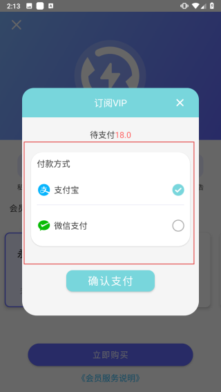4、進(jìn)入付款頁面后,選擇支付方式,接著點(diǎn)擊確認(rèn)支付按鈕完成付款。