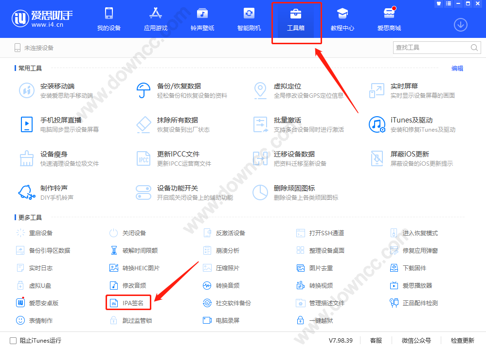 安裝愛思助手,打開愛思助手的工具箱,下面有一個IPA簽名: