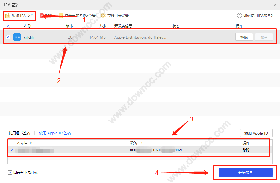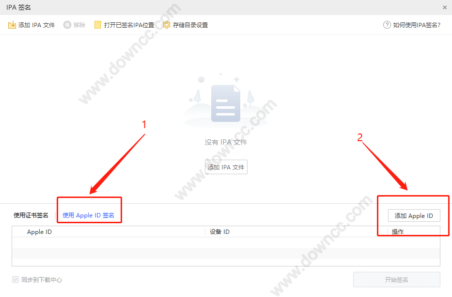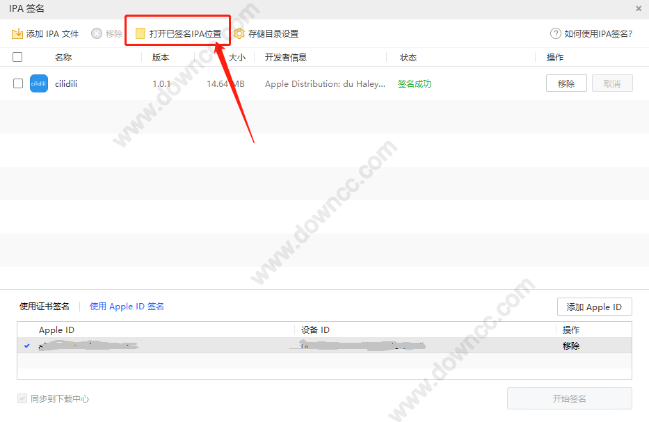 添加完成之后,就可以添加IPA文件了,然后就選擇appid簽名,記得點一下,然后就可以開始簽名: