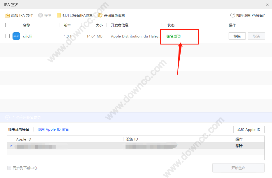 等待簽名,然后就顯示簽名成功,就可以通過愛思助手安裝到手機上: