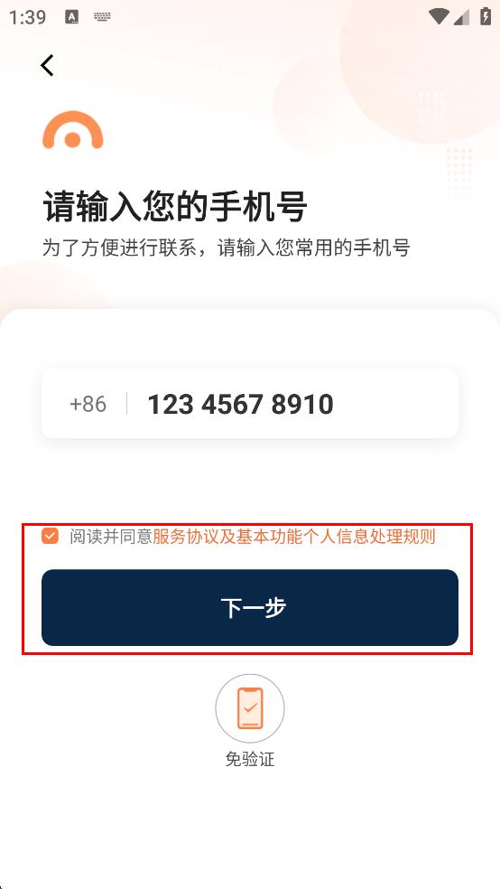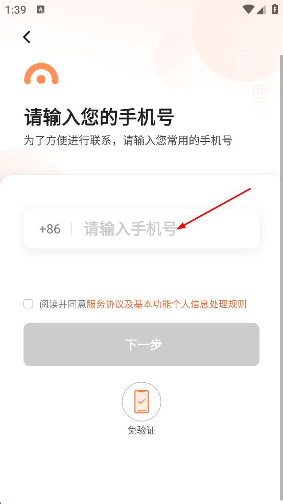 3、在手機號輸入頁面,在指定輸入框中輸入要使用的手機號。
