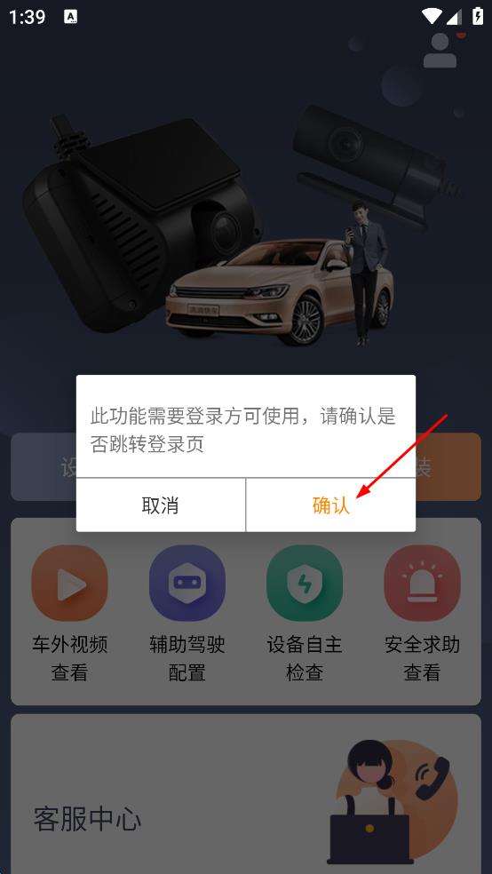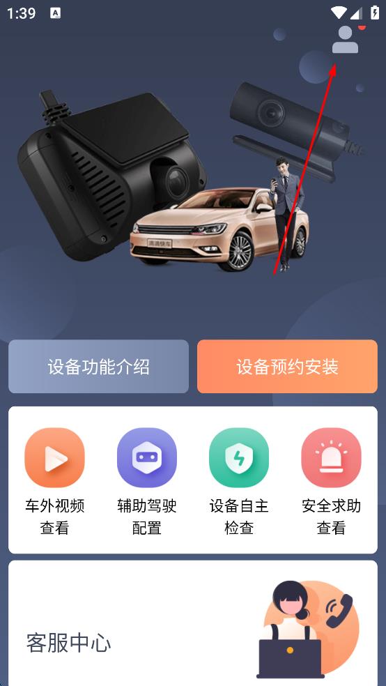 1、打開汽車設(shè)備服務(wù)軟件,進入主界面后,點擊頁面右上角的人形圖標,彈出功能使用提示框。