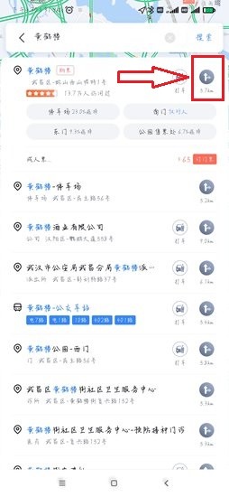 2、搜索地址后會(huì)出現(xiàn)地址的具體選擇,然后選擇用戶想要去的具體地址,就會(huì)為用戶規(guī)劃出行路線