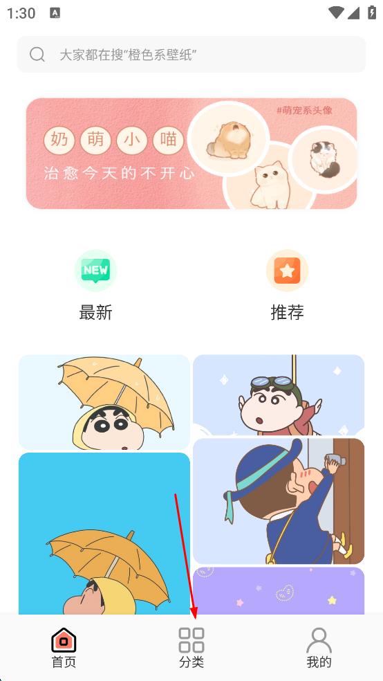 1、打開壁紙軟件,點(diǎn)擊底部“分類”,進(jìn)入分類頁面,瀏覽熱門搜索與系列分類,尋找心儀壁紙類別。