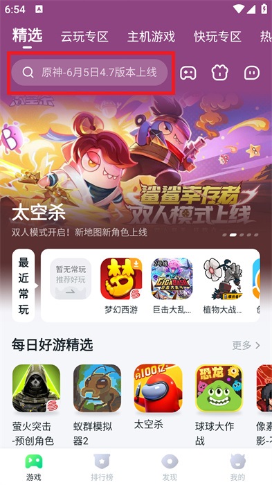 1、首先玩家需要下載最新版本的870游戲盒,然后進(jìn)入到軟件界面,在界面中點擊上方的【搜索框】;