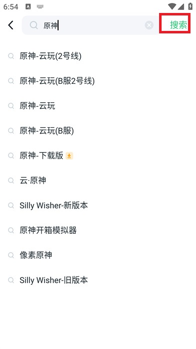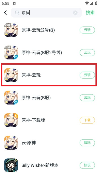 3、在搜索結(jié)果出來之后,我們點擊【原神-云玩】,點擊右邊的【云玩】進(jìn)行體驗;