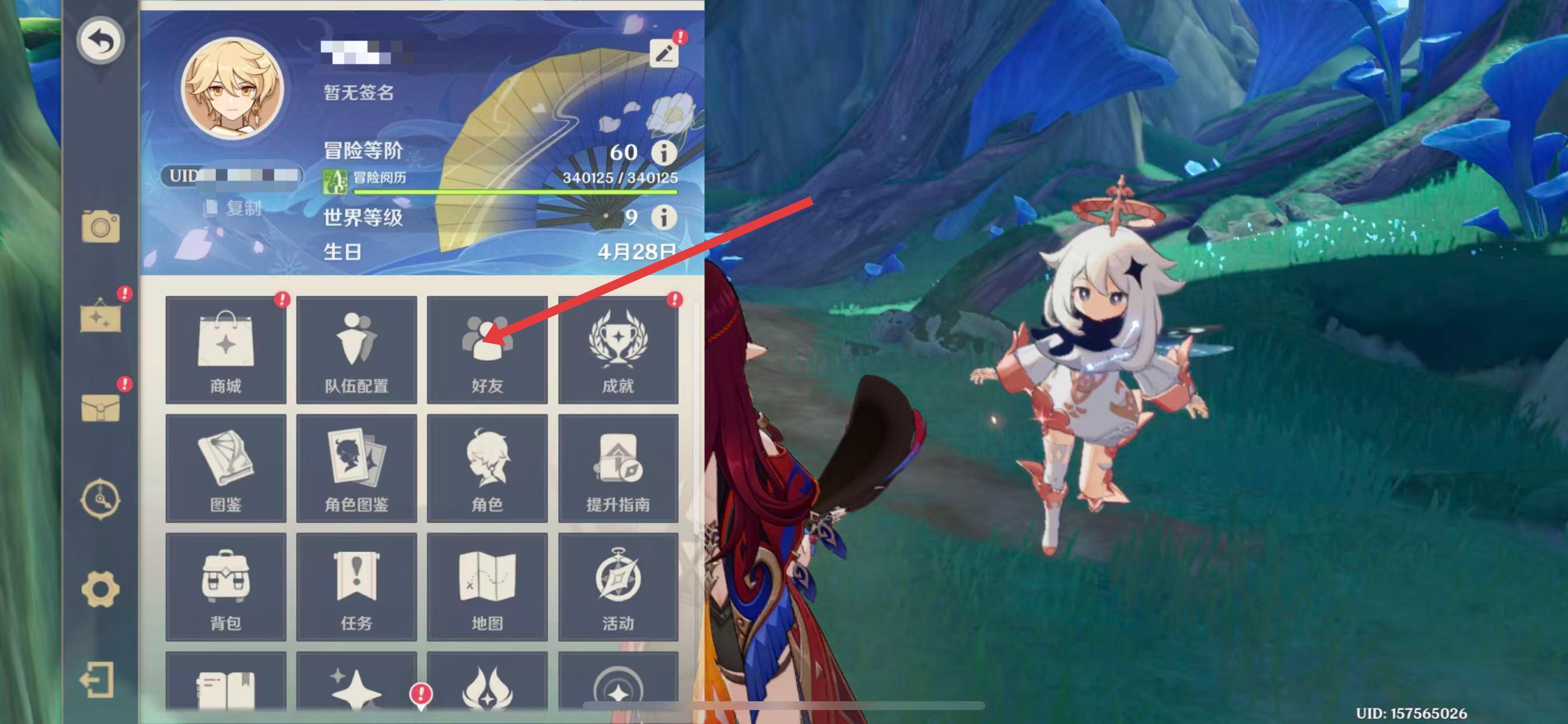1、點(diǎn)擊游戲界面左上角的派蒙頭像,打開游戲菜單。