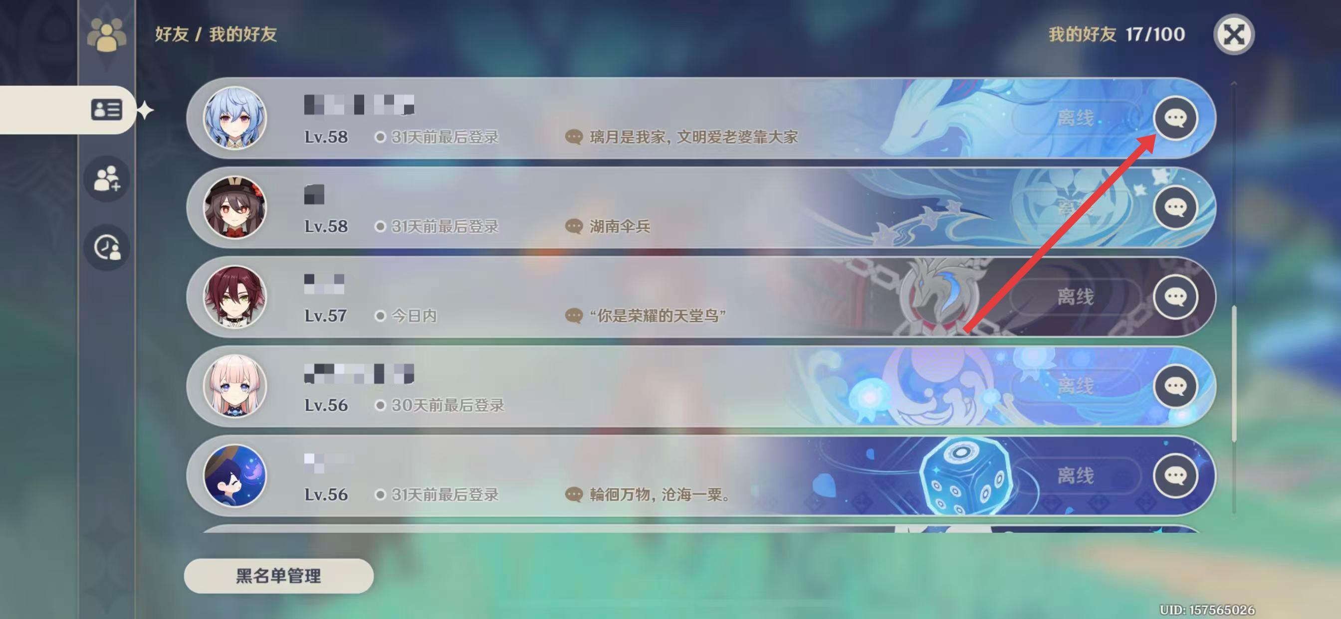 3、在好友列表里,找到想要私聊的好友,點(diǎn)擊該好友名字右側(cè)的對話氣泡圖標(biāo),即可進(jìn)入和好友的私聊聊天界面。