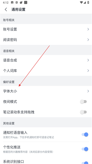 3、進(jìn)入通用設(shè)置頁(yè)面后,點(diǎn)擊字體大小選項(xiàng)。
