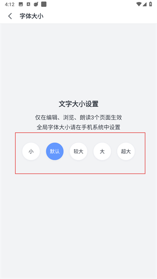 4、在字體大小設(shè)置頁(yè)面,可選擇不同的字體大小。