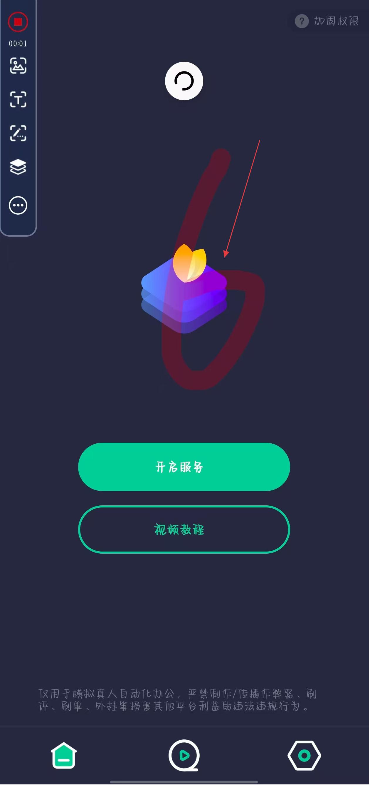 可以打開懸浮窗權(quán)限,這樣就可以在其他應(yīng)用界面下運(yùn)行腳本了;