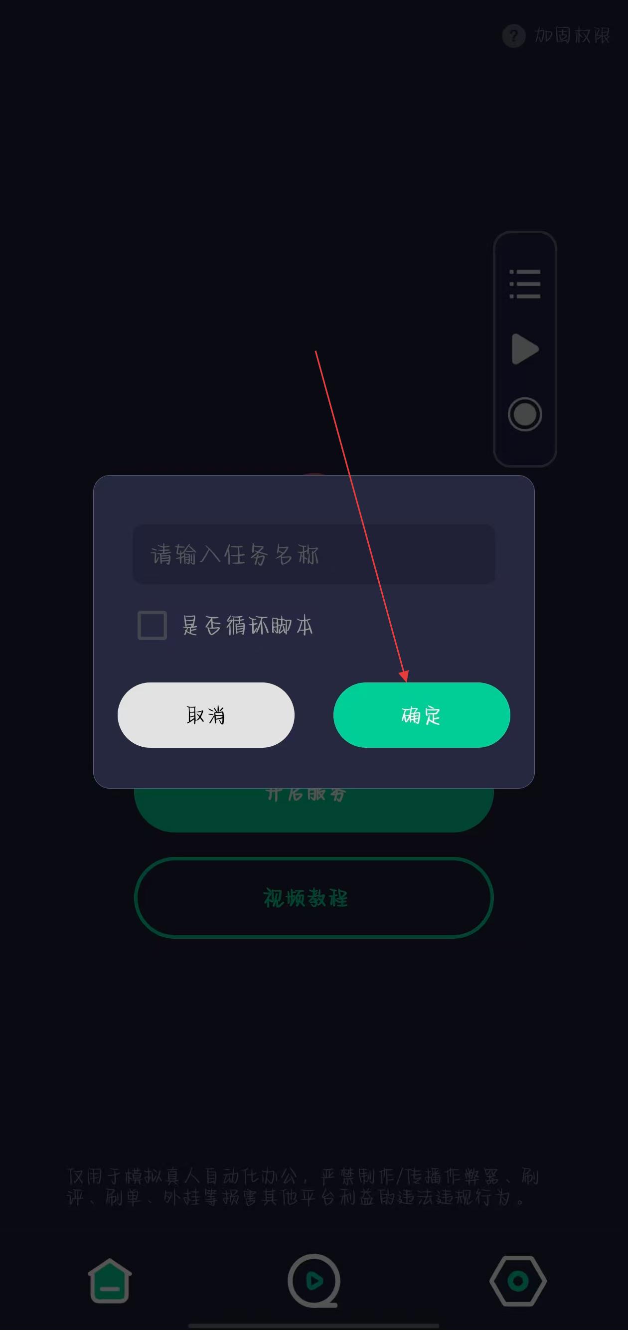 3、在彈出的請(qǐng)輸入任務(wù)名稱對(duì)話框中,輸入任務(wù)名稱并勾選是否循環(huán)腳本,點(diǎn)擊確定保存腳本。