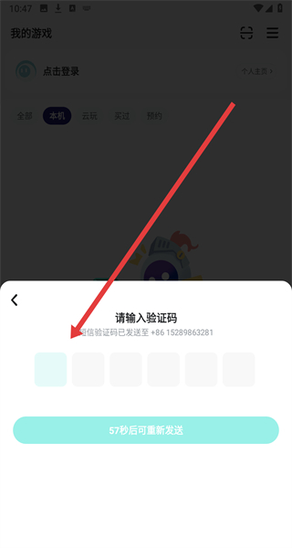4、在跳轉(zhuǎn)到驗(yàn)證界面中,點(diǎn)擊輸入框填寫(xiě)獲取到的驗(yàn)證碼后,即可完成登錄。