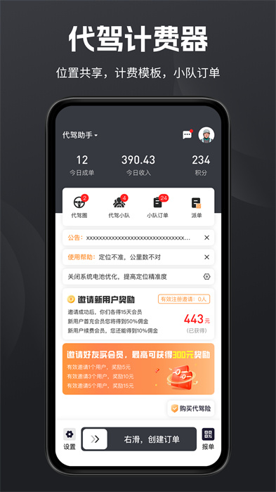 1、為你提供標(biāo)準(zhǔn)計(jì)價(jià)器,軟件還會(huì)自動(dòng)計(jì)算代駕費(fèi)用。