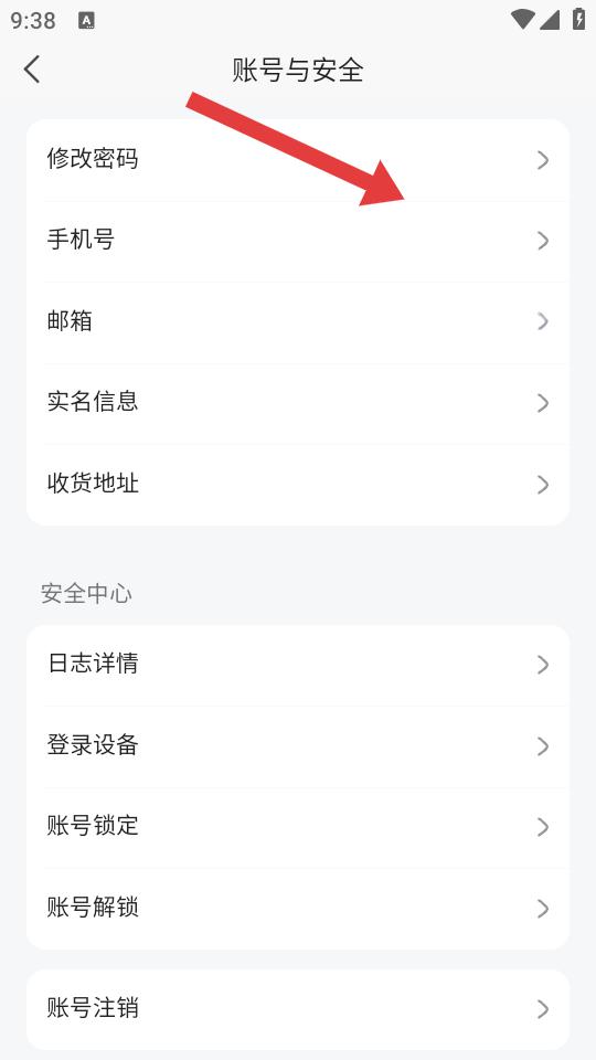 2、在賬號(hào)與安全的頁(yè)面中,需要點(diǎn)擊顯示的手機(jī)號(hào)的選項(xiàng),進(jìn)入手機(jī)號(hào)綁定的詳情頁(yè)。
