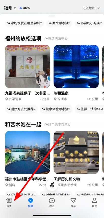 1、打開高德地圖APP點擊底部導航欄首頁選項,進入首頁界面。