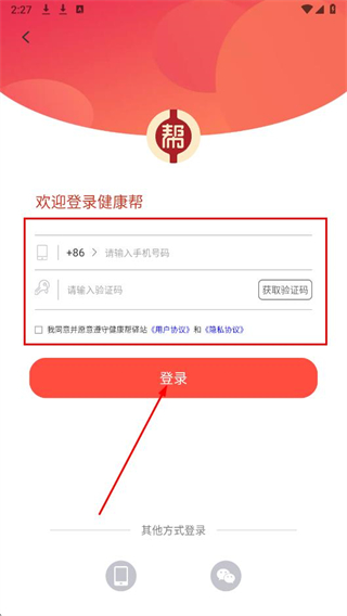 3、輸入手機號碼,點擊獲取驗證碼并填入收,勾選用戶協(xié)議,然后點擊登錄。