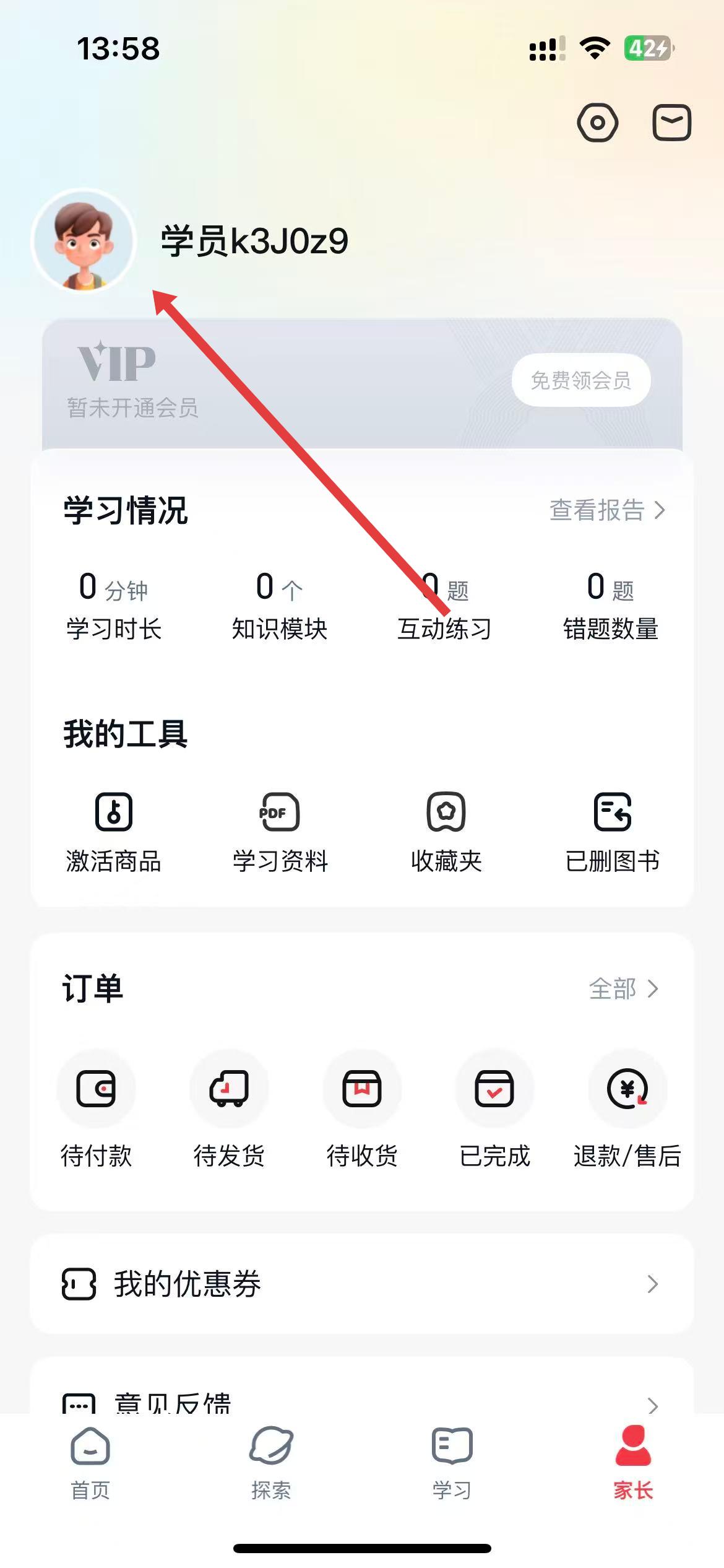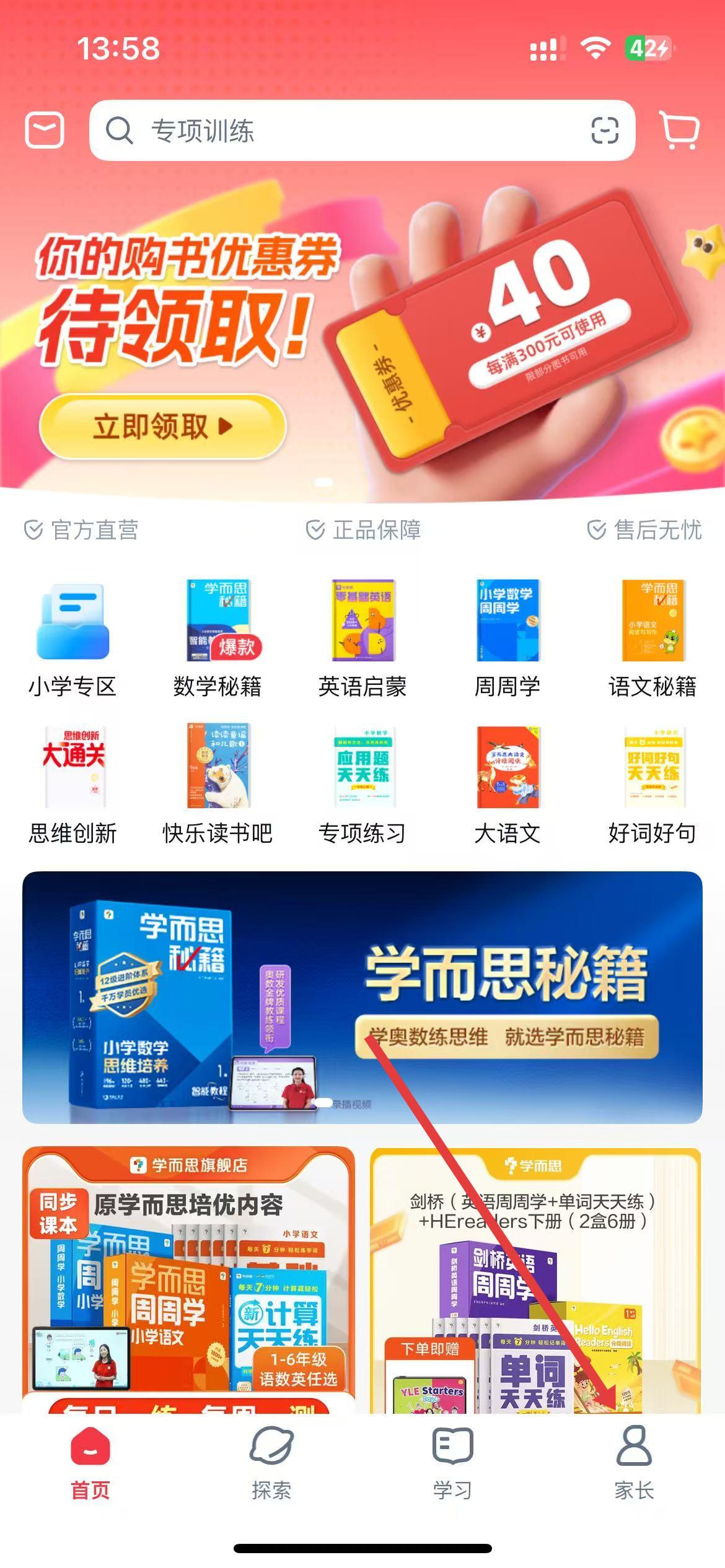 1、打開(kāi)好未來(lái)圖書(shū)app,點(diǎn)擊底部導(dǎo)航欄中的家長(zhǎng)選項(xiàng)進(jìn)入相關(guān)界面。
