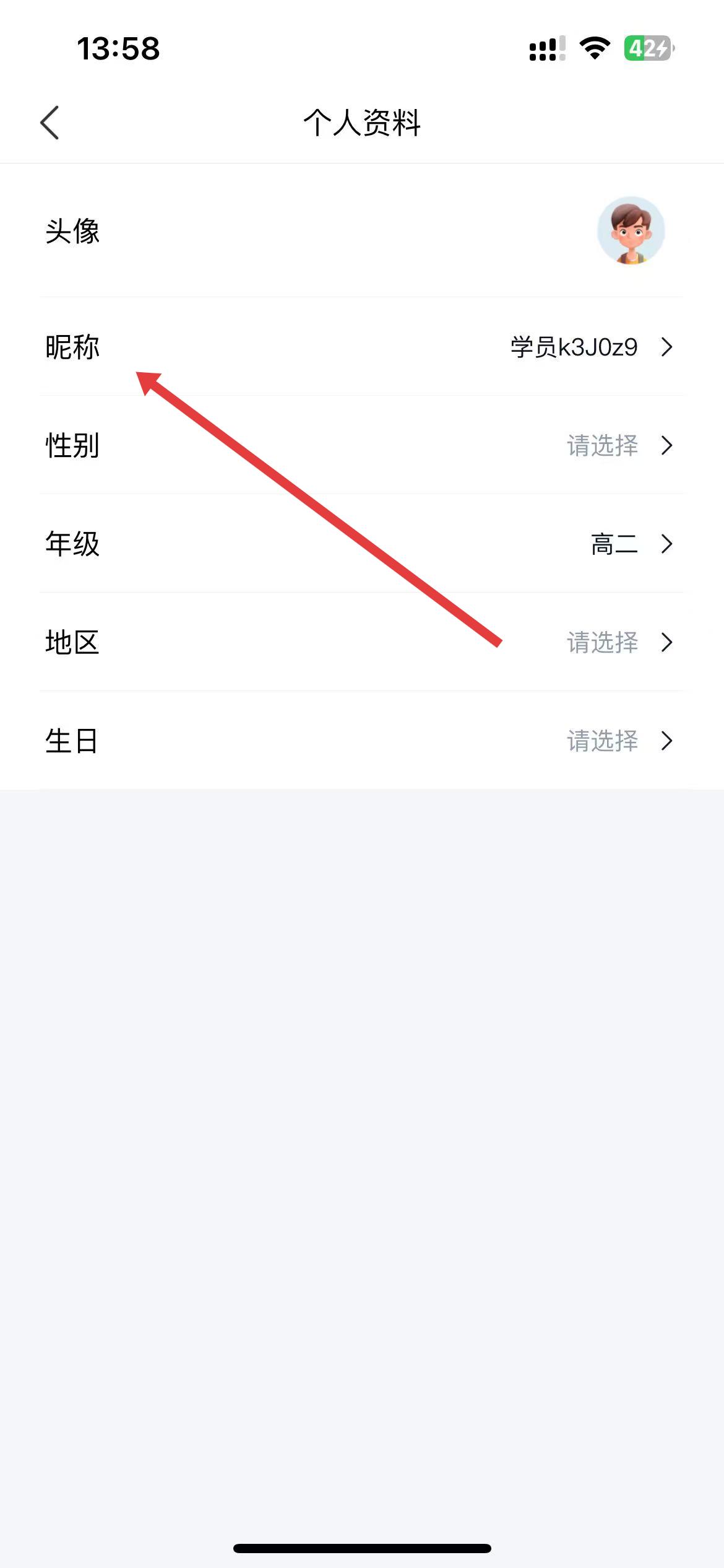 3、在個(gè)人資料頁(yè)面里,找到昵稱選項(xiàng)并點(diǎn)擊進(jìn)入修改昵稱界面。