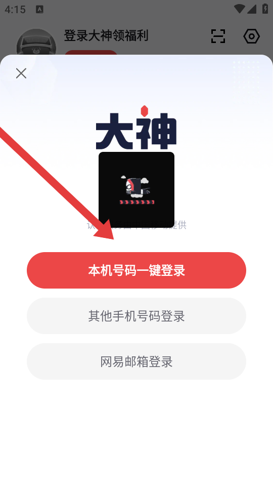 3、在登錄彈窗中,選擇本機(jī)號碼一鍵登錄選項(xiàng),快速完成賬號驗(yàn)證,或者還可以選擇底下其他的方法登入。