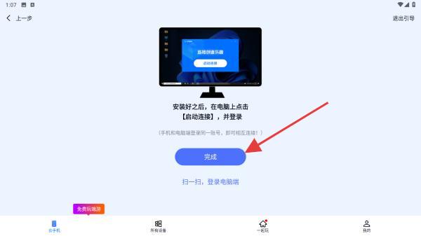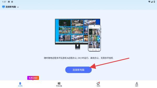 1、打開無界趣連APP,找到并點擊界面中的連接新電腦按鈕。