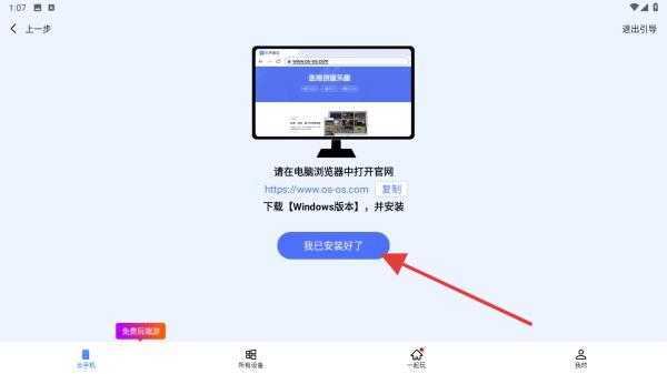 2、確認電腦端狀態(tài),APP會提示請在電腦瀏覽器中打開官網(wǎng)下載Windows版本并安裝,若已安裝,點擊我已安裝好了。