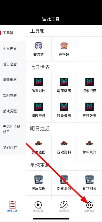 1、打開(kāi)頑皮兔應(yīng)用,進(jìn)入游戲工具頁(yè)面,點(diǎn)擊右下角的系統(tǒng)設(shè)置圖標(biāo)。