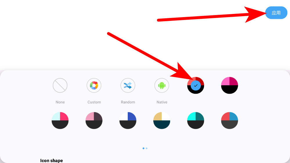 3、在圖標(biāo)顏色設(shè)置頁(yè)面,選擇想要的圖標(biāo)顏色樣式,選好后點(diǎn)擊應(yīng)用按鈕。