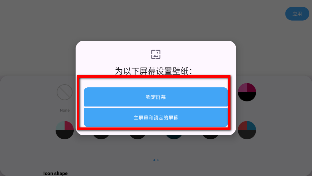 4、應(yīng)用后,若有設(shè)置壁紙相關(guān)彈窗,根據(jù)需求選擇鎖定屏幕或主屏幕和鎖定的屏幕來(lái)完成后續(xù)設(shè)置。