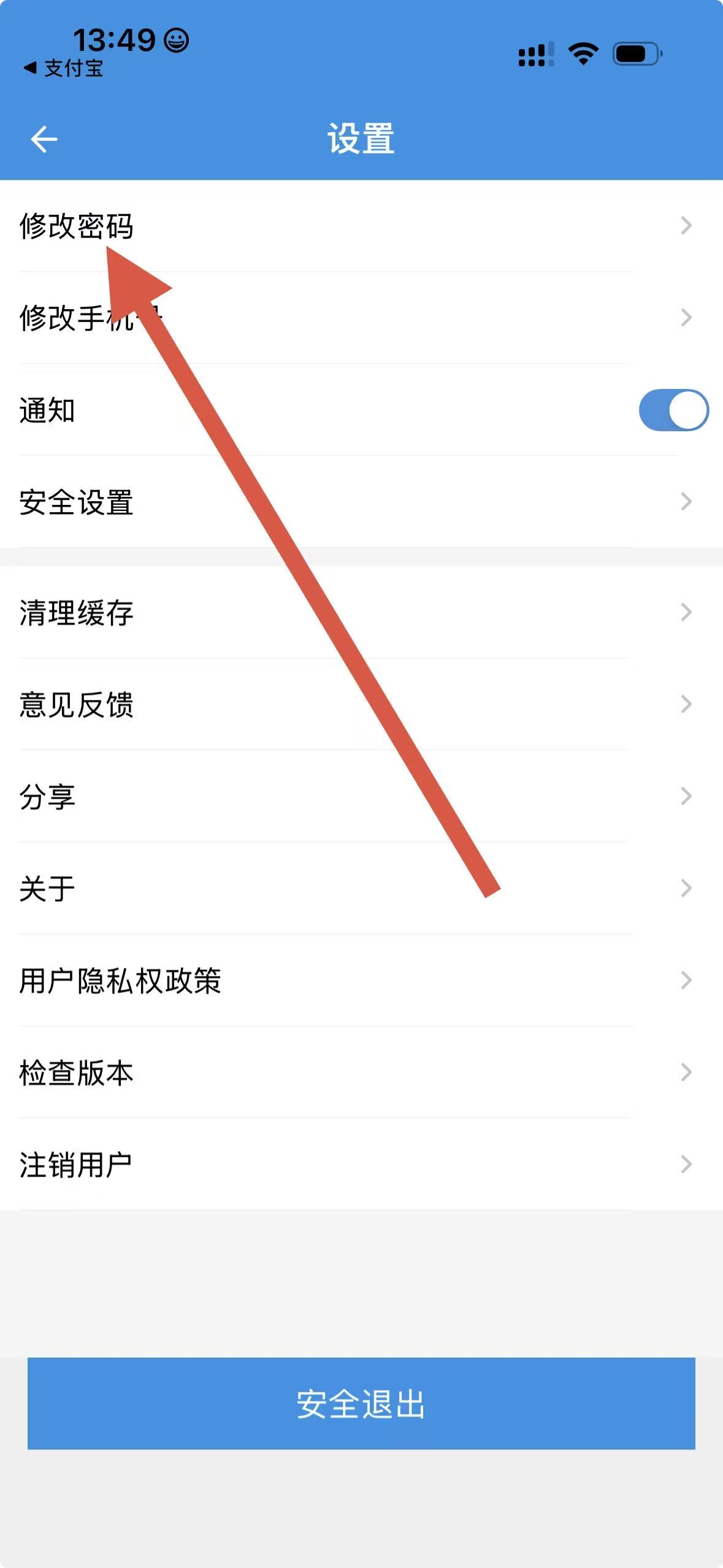 3、在設(shè)置頁(yè)面中,找到并點(diǎn)擊修改密碼選項(xiàng)。