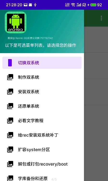 如果您使用的是我在2021/11/07之前發(fā)布的雙系統(tǒng),由于其實(shí)現(xiàn)方法老舊,所以是不兼容于本app的;如需使用本app,只能使用本app來制作安裝雙系統(tǒng)。
