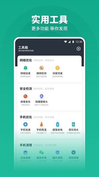 垃圾清理、手機降溫、病毒查殺等更多實用貼心功能,馬上下載體驗!