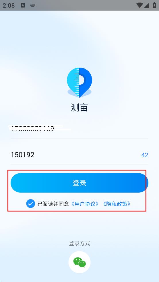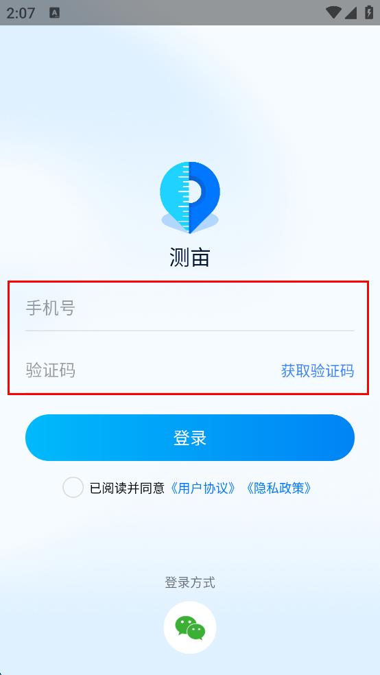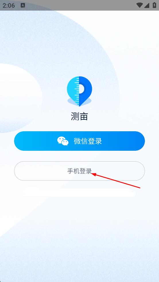 1、打開測畝APP,點擊手機登錄,進入手機登錄界面。