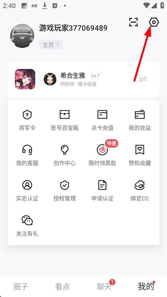2、在個(gè)人頁(yè)面右上角,點(diǎn)擊設(shè)置圖標(biāo)進(jìn)入設(shè)置界面。
