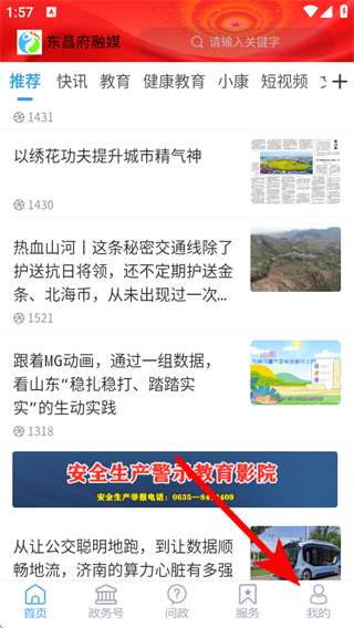 1、打開東昌府融媒APP首頁(yè),點(diǎn)擊底部我的,進(jìn)入個(gè)人頁(yè)面。