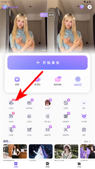 1、打開PrettyUp應(yīng)用,在首頁點擊AI發(fā)型選項。