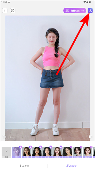 4、完成頭發(fā)修飾調(diào)整后,點擊右上角的下載圖標(biāo),保存修圖結(jié)果。