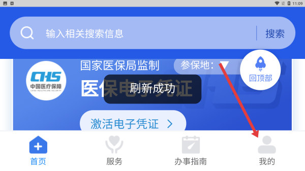 1、打開醫(yī)保應(yīng)用首頁,點(diǎn)擊底部導(dǎo)航欄右側(cè)的我的,進(jìn)入個(gè)人中心頁面,開啟賬號(hào)操作流程。