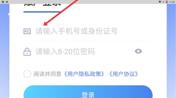 3、進(jìn)入登錄界面,在請(qǐng)輸入手機(jī)號(hào)或身份證號(hào)框填寫信息,為醫(yī)保賬號(hào)登錄做準(zhǔn)備。