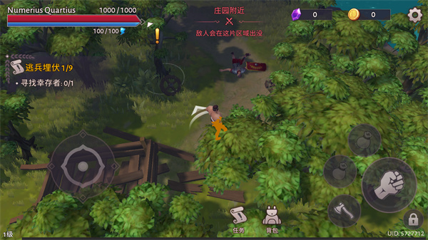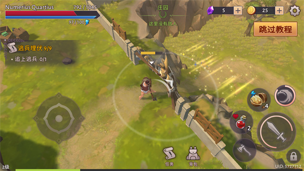 1、首先進(jìn)入游戲之后,不需要注冊(cè),實(shí)名認(rèn)證之后就能直接開(kāi)始玩,在新手教程中提示有敵人出沒(méi)在附近,根據(jù)提示往上走;