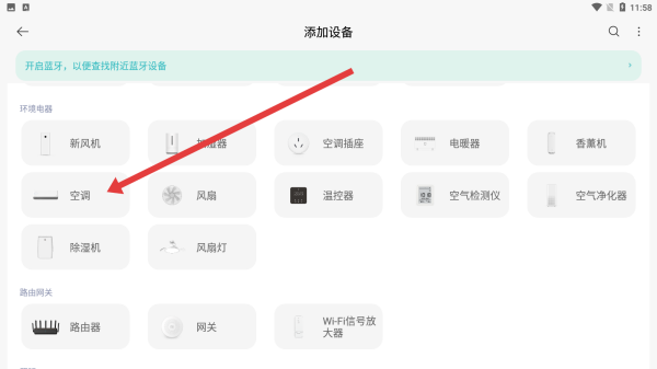2、在進入到添加設(shè)備頁面中,找到空調(diào)圖標(biāo)的區(qū)域點擊進入添加空調(diào)。