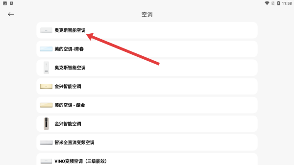3、可以在空調(diào)添加頁面中點擊選擇自己的空調(diào)型號比如奧克斯智能空調(diào)。