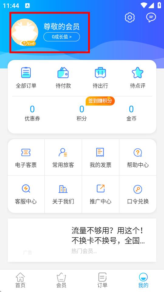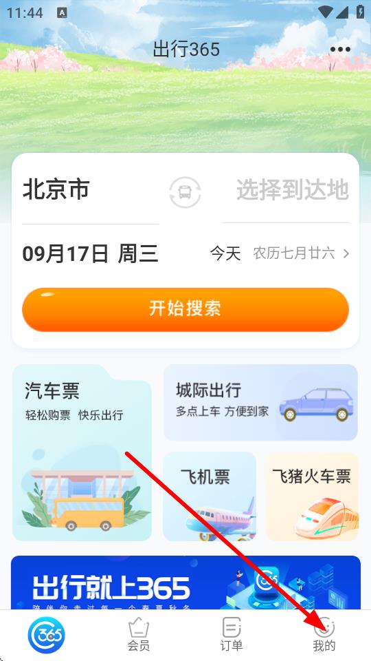 1、打開出行365App,點擊首頁下方導航欄中的我的進入個人中心頁面。
