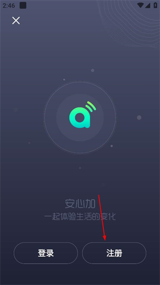 2、在登錄注冊選擇界面,點擊“注冊”按鈕,進入注冊界面。