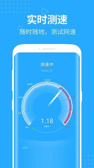 2、通過(guò)清晰醒目的數(shù)據(jù)反饋此時(shí)的網(wǎng)絡(luò)速度,讓用戶在用手機(jī)網(wǎng)絡(luò)時(shí)更方便。
